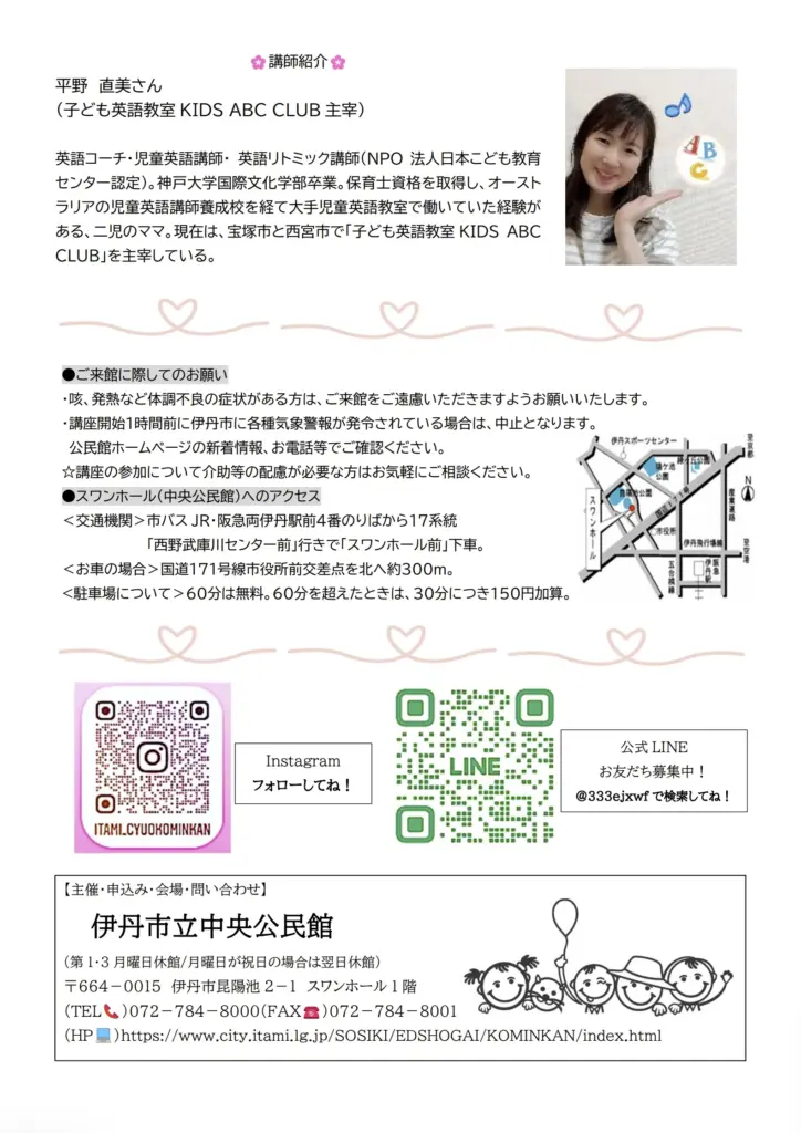| イベントURL | https://www.city.itami.lg.jp/SOSIKI/EDSHOGAI/KOMINKAN/KATEIKYOUIKU_JIGYOU/45680.html |