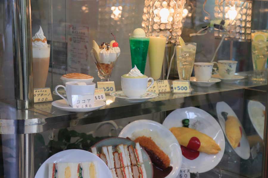 ショーウインドーをのぞいて見ると、これも昭和の定番、本物みたいな食品サンプルが今もなおきっちり役目を果たしています。