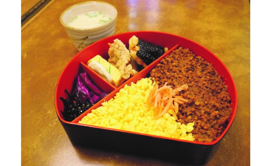 国産地鶏を使った秘伝のレシピで、じっくり炊いた鶏そぼろが名物の正起屋(まさきや)。同店で創業から60年以上変わらない人気を誇るのが、鶏そぼろがたっぷり入った「とり弁当」735円です。