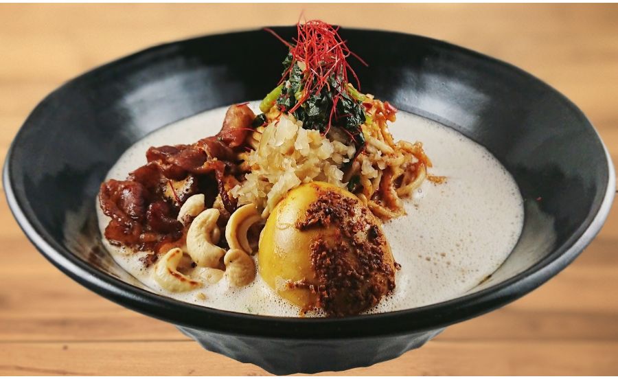 スパイスカレー、カレーラーメン、担々麺を提供する同店ですが、今回ご紹介するのはこちら。「味玉九龍担々麺(あじたまくうろんたんたんめん)」です。