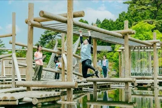 地上約2〜15mの高さにあるジップスライドなどスリル満点のアクティビティが体験できる「フォレストアドベンチャー・神戸六甲山」、池の上に設置された水上アスレチック「ワンダーアメンボー」、さらに併設のバーベキュー場でのアウトドアクッキングも楽しめます。