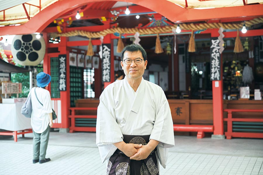 「御神木をおさすりして、お参りをしてから電車に乗る。そんな風景が日常です」と話すのは、服部天神宮の宮司・加藤芳哉さん。