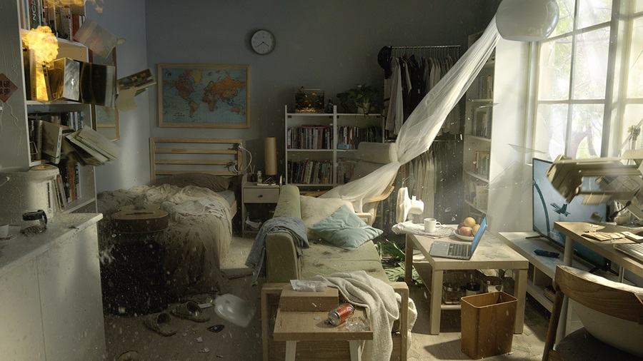 袁廣鳴(ユェン・グァンミン)は、居心地のいい居住空間が何者かによって次第に破壊されていく、戦争と背中合わせの日常を描き出しています。