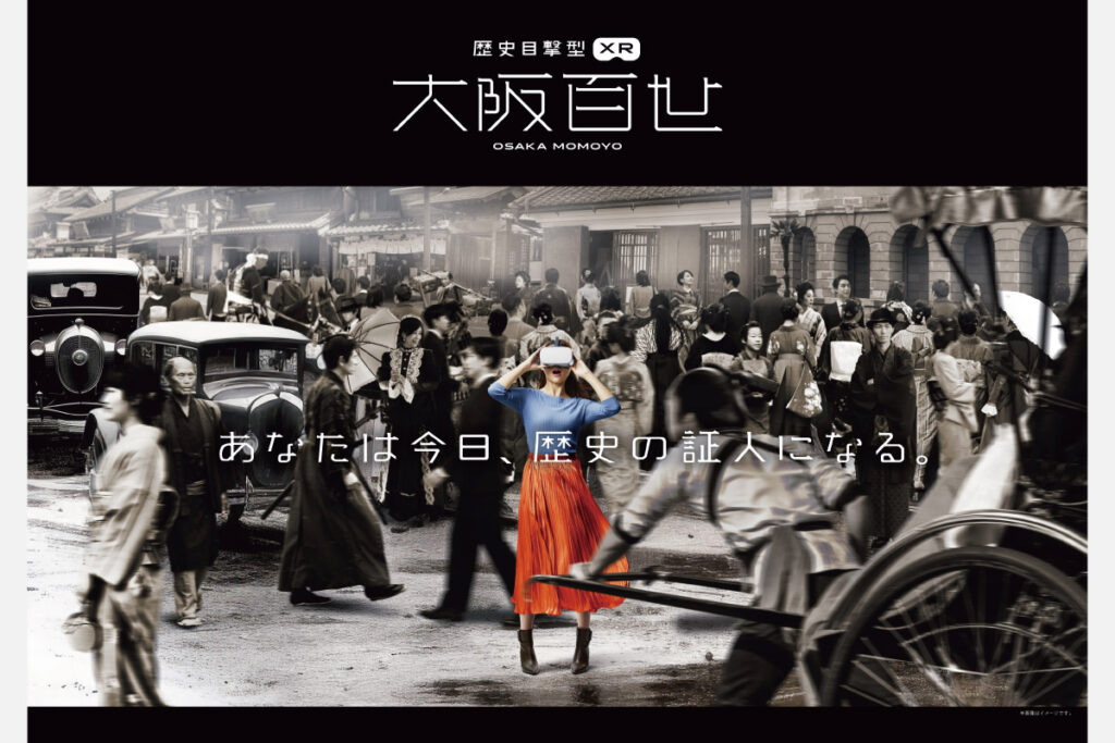 大阪市立住まいのミュージアム 大阪くらしの今昔館で、江戸から令和まで、それぞれの時代の大阪の街や人々の様子を360度VRアニメーション映像で表現する「大阪百世」。実際にその場にいるかのような実在感を楽しめる。