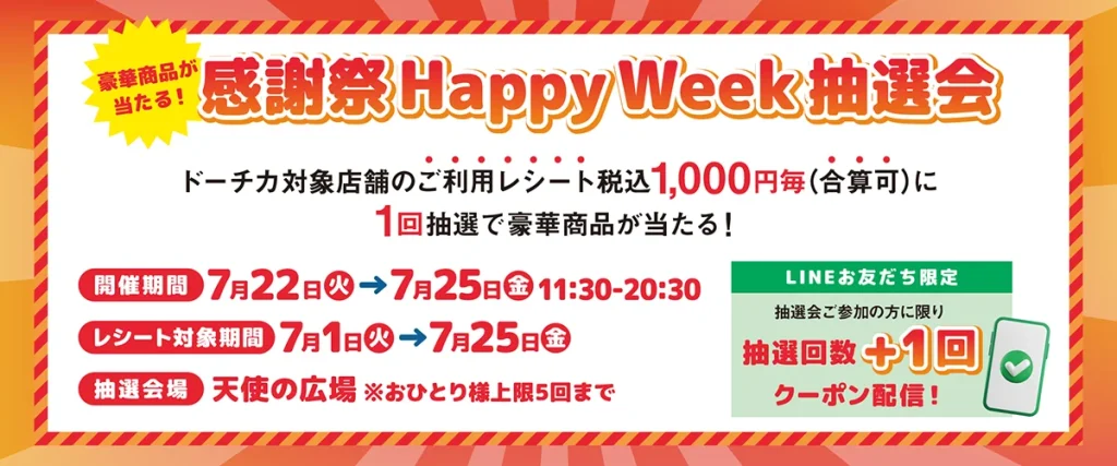 | イベント名 | ドーチカ感謝祭 Happy Week抽選会 |
