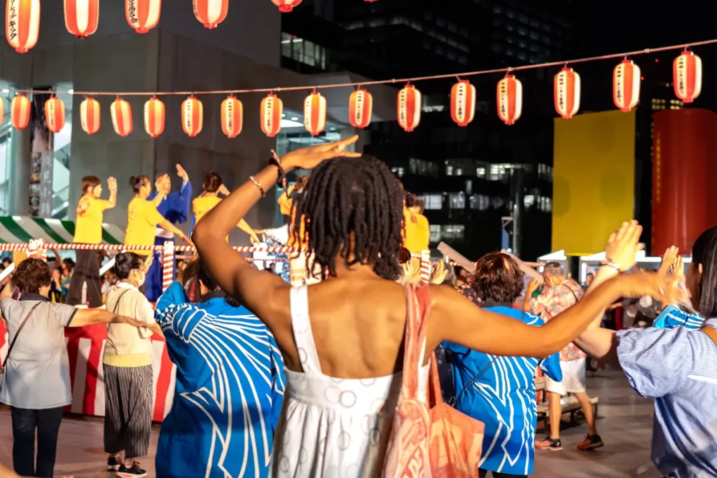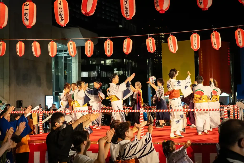 夏祭りのために生まれたオリジナル曲「新梅田シティ音頭」をはじめ日本各地で親しまれてきた伝統の盆踊り「炭坑節」や「河内おとこ節」など、世代を超えて踊り継がれてきた名曲が、都会の真ん中に響き渡ります。