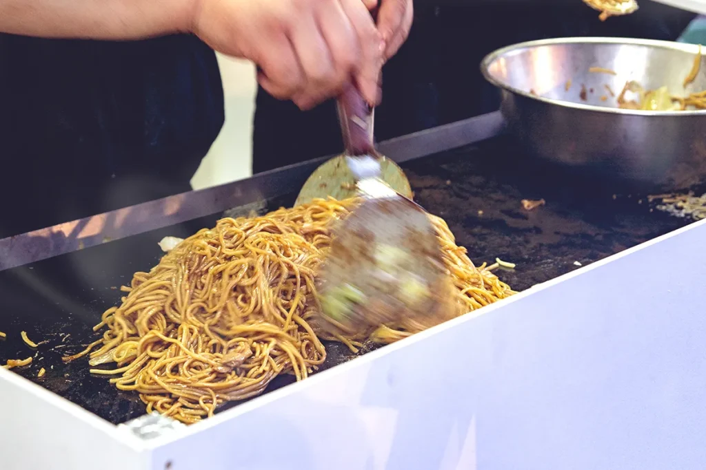 また、梅田スカイビル地下1階のレトロ飲食店街「滝見小路」から、フランクフルトや串カツ、わた菓子にかき氷など、グルメ屋台が多数出店します。
