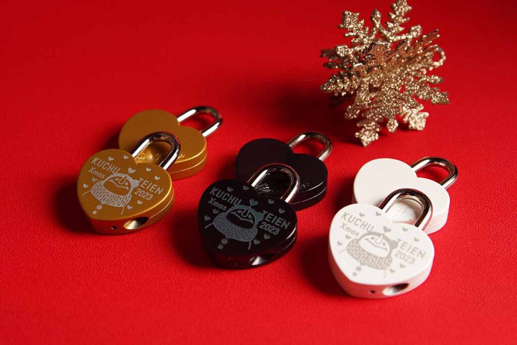 さらに、毎年好評のクリスマス限定刻印ハートロックも登場。今年は降り注ぐハートを見上げる雪だるまデザインだ。