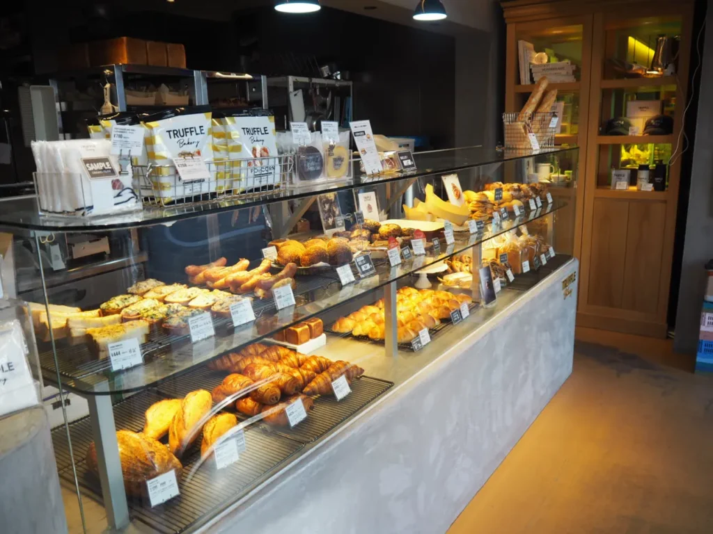 トリュフベーカリー大阪本店(Truffle BAKERY 大阪本店)は、ヨーロッパの専門食材を取り扱うWEB通販『ハイ食材室』を運営するDRESSTABLE』が手掛けるベーカリー。おいしいパンを作るだけではなく持続可能性のある本質的な食材を徹底的に選び、限りなく化学調味料は使わず物造りを行っています。便利な立地の支店、ルクア大阪内の店舗はいつも大行列ができていますが、こちらの店舗は比較的空いていて店舗オリジナルの商品もありますのでおすすめです。