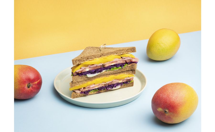 また、「堀内果実園」の特徴的なサンドイッチで、フルーツを使用したおかずサンドもラインアップ。「マンゴーローストビーフ」1,200円は、マンゴーとローストビーフをサルサソースで和えたサンドイッチ。彩も美しく、ボリュームも満点です。