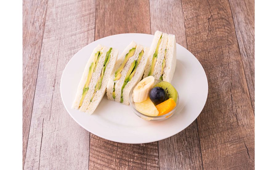 また、アボカドを使った「アボカドサンドウィッチ」などもあります。こちらもフルーツが少し楽しめるのはうれしいですね。ドリンク付きのセットもあるので、アボカド好きはぜひ試してみては。
