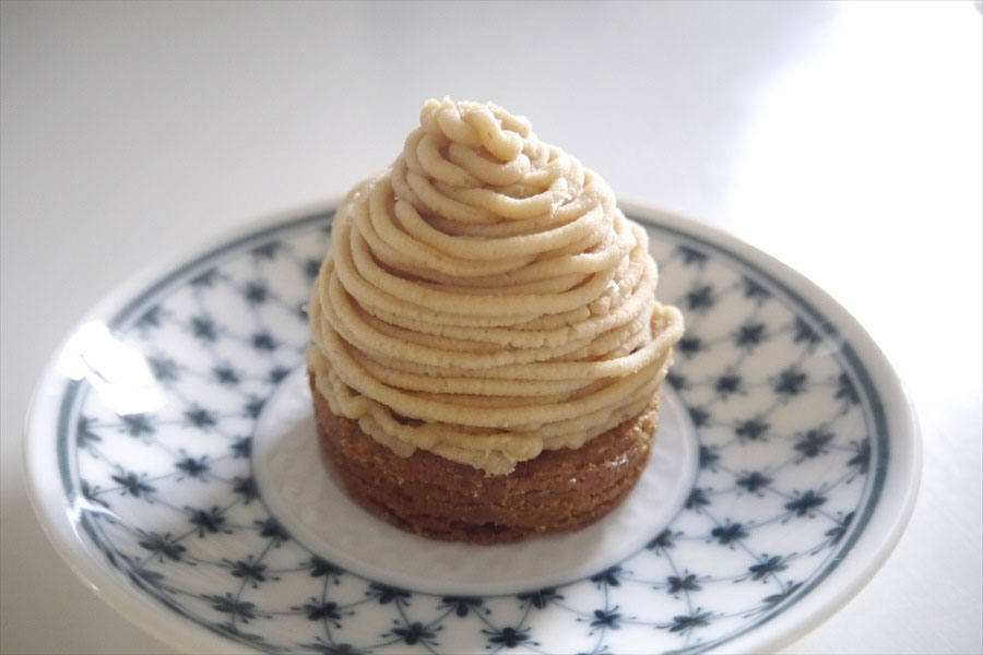 王道のおいしさ「フランス栗を使ったモンブラン AOPバターのガレッタルト」750円(1日100個限定)。フランス栗とマロンクリームで仕上げたモンブラン部分は甘さ控えめ。栗部分の甘さが控えられているからこそ、タルト生地のおいしさがしっかり生きていて”主役は栗ではなくクッキーなんだ”ということが実感できる、王道のおいしさです。