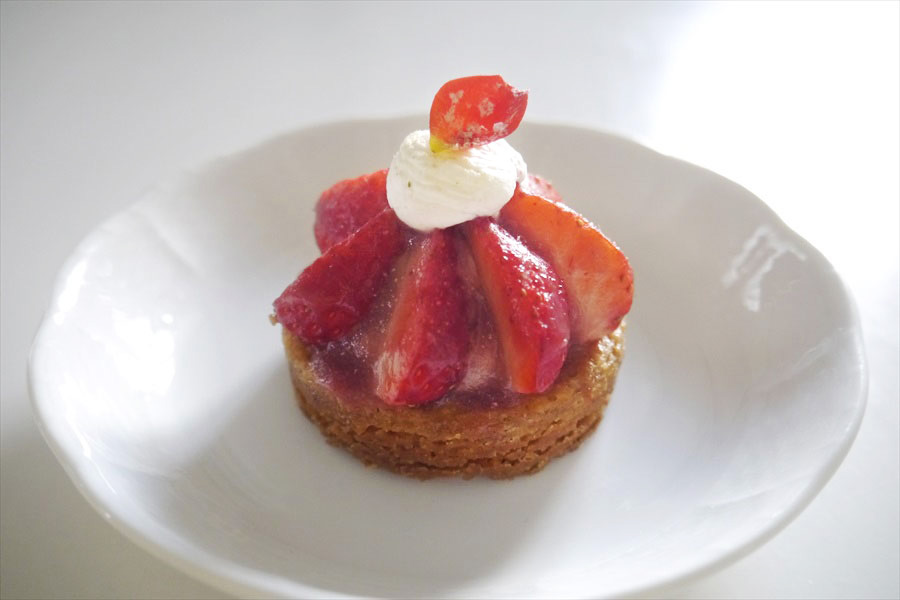 「ガレッタルト」とは、今回のイベントのために髙山シェフが考案したお菓子で、厚焼きのガレットをタルト風にアレンジしたもの(ガレット・ブルトンヌをアレンジ!)。この「ガレッタルト」 にはとにかく認定が厳しいことで知られるAOP(フランス語で原産地保護呼称の頭文字)バターをたっぷり使用、ザクザク食感も楽しいタルトです。