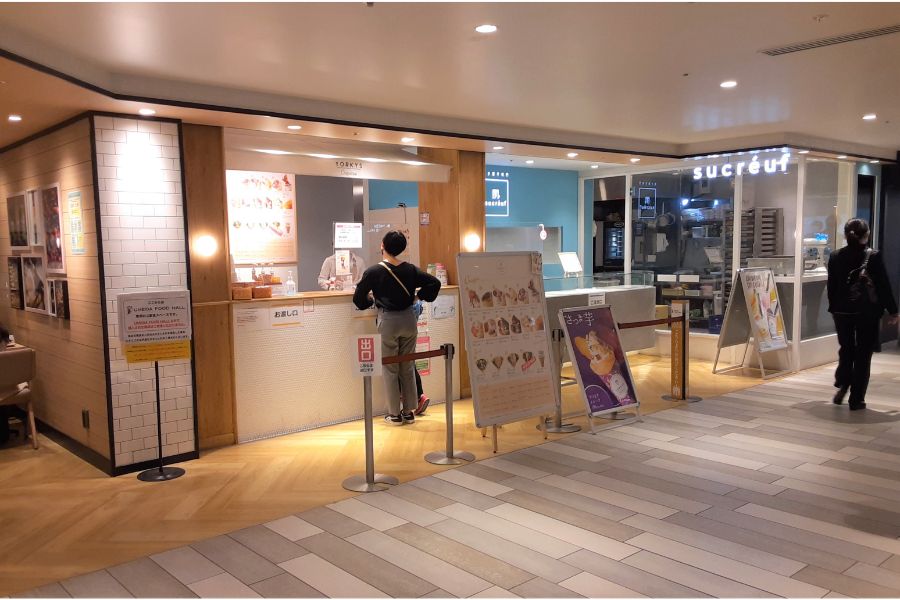食事したい人、スイーツが食べたい人がいても問題ないのもフードホールの魅力の一つですね。そんな施設で、人気のレストランが展開するクレープをゆったりいただくことができます。