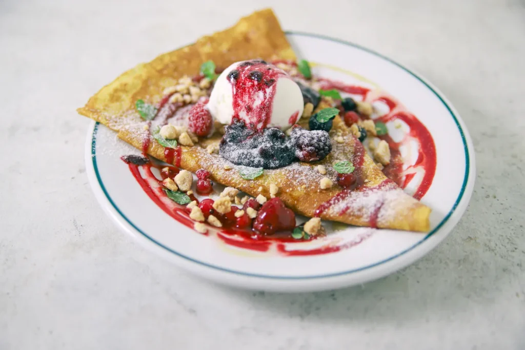 「BARBARA market place GRAND ROYAL 2429 中崎本店(バルバラマーケットプレイスグランドロイヤル)」では、 石窯調理から旬の食材や気軽なデリなどの食事はもちろん、クレープなどのスイーツ類からドリンク類も豊富にラインアップ。またお酒類もあるので、かたやお酒とおつまみ、かたやスイーツとコーヒーをいただきながら…なんて時にも使えて便利です。