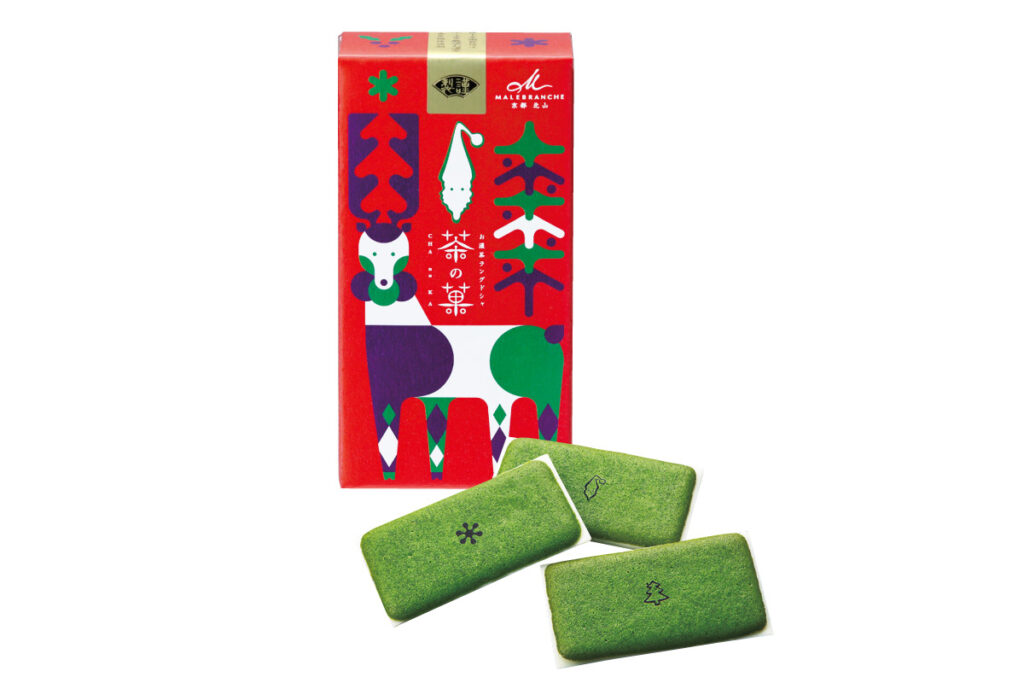 クリスマスプレゼントにもぴったりな「お濃茶ラングドシャ『茶の菓』」3枚入 クリスマス限定パッケージ417円(12月1~25日に販売。数量限定)。
