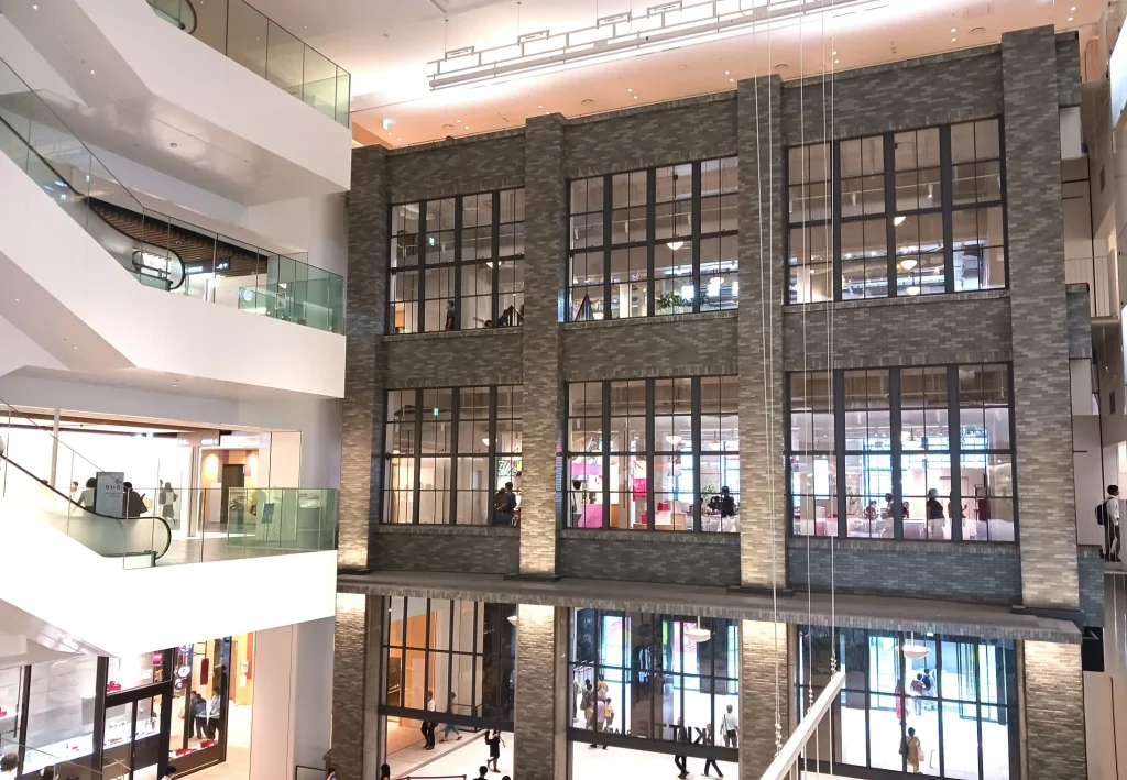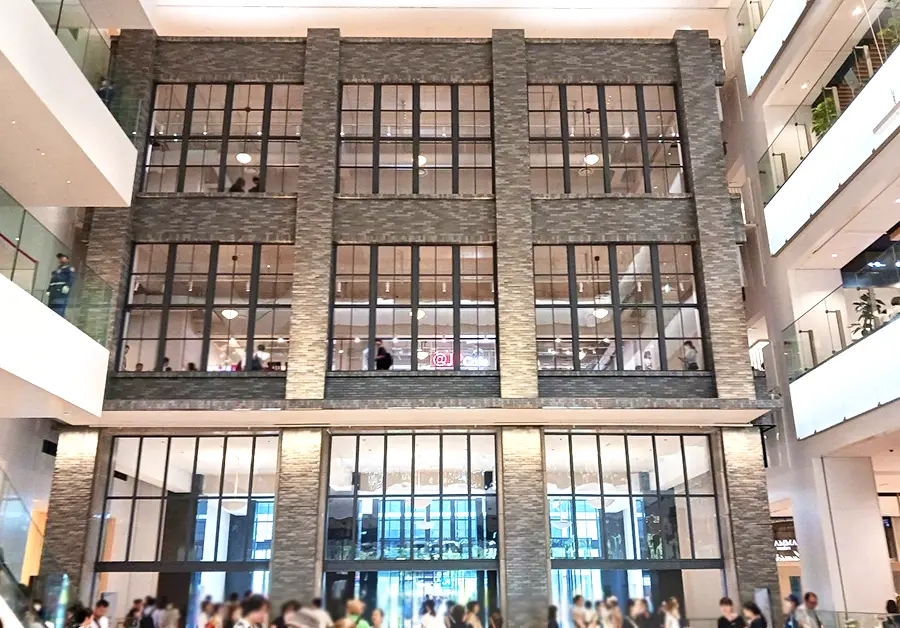 最後は、「KITTE(キッテ)大阪」の建物自体です。貴重な近代建築として評価の高い、旧大阪中央郵便局の保存区画がある「KITTE(キッテ)大阪」。近代的な建物の中に、レトロな雰囲気のレンガ造りの壁や窓があるのもこの保存区画があるから。