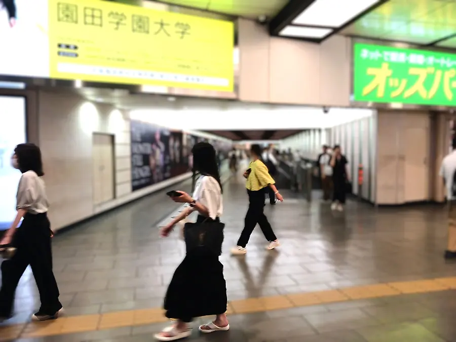1 阪急大阪梅田駅 3階改札口を降りてきたところからスタートです。ムービングウォーク(動く歩道)にのります。