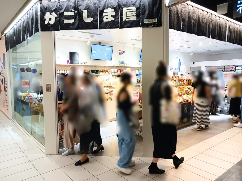 鹿児島県のおいしいものが一堂に集まったアンテナショップ。さつまあげにお茶など県の特産品が多くそろいます。
