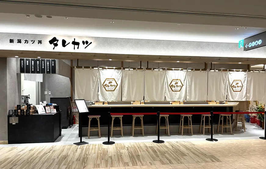 KITTE大阪4階にあるのが、「新潟カツ丼タレカツ KITTE大阪店」。まず、店名にもなっている「タレカツ」とは、新潟市のソウルフード。古くから西洋料理が盛んな新潟では、長い間玉子でとじない「タレカツ丼」が愛されてきたのだそう。それも西洋料理の延長にあるので、このタレカツ丼のカツはカツレツ由来の薄いトンカツなんです。そのカツを甘辛醤油ダレにくぐらせてご飯にのせた…というシンプルだけどみんな大好きな丼ぶりが「タレカツ丼」です。