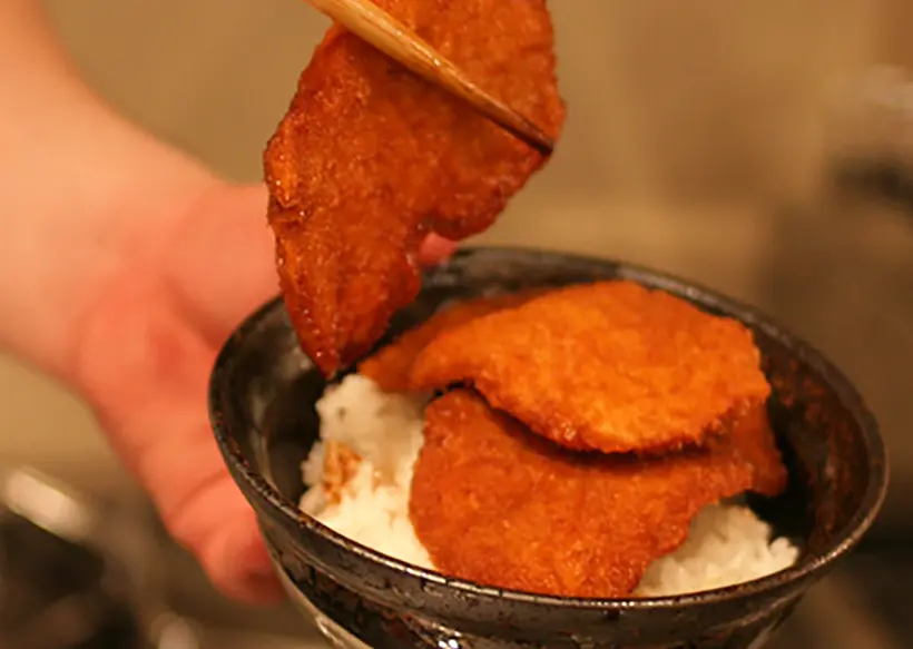 カツ3枚、生野菜、みそ汁、香の物がついたセットで、カツが薄く食べやすいところも魅力的です。トンカツが大好きな人はもちろんですが、この薄さのおかげで油ものはそこまで食べないという人も気付けばぺろりと完食してしまう一品です。またソースがあっさりした甘辛醤油で万人に愛される味わいに。日本人誰も嫌いな人なんていないのでは…というおいしさなんです。