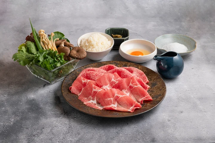 まず、「すき焼 しゃぶしゃぶつかだ KITTE大阪店」でいただきたいランチは、「【NANIWA 720 LUNCH】黒毛和牛2種と黒豚盛り合わせすき焼/しゃぶしゃぶセット」。お昼から3種のお肉を味わえる限定ランチです。