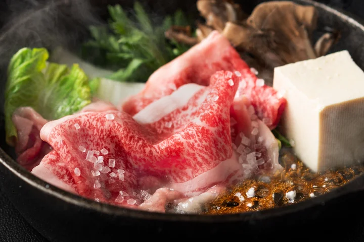 「すき焼 しゃぶしゃぶつかだ KITTE大阪店」は、ザラメで焼いてからいただく関西スタイルのすき焼きのお店。といいながら「すき焼 しゃぶしゃぶつかだ KITTE大阪店」は東京・渋谷で大人気のすき焼き店なんです。もちろん店名にもなっていますが、風味豊かな出汁でいただくしゃぶしゃぶもおすすめですよ!