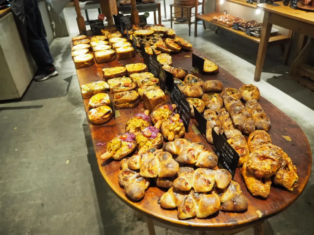 木製のトレイを持って歩くおしゃれな店内には幅広い種類のパンが所狭しと並んでいます。価格帯は200~400円台で、今回の購入分の平均価格は390円ほどでした。便利な立地とおいしさの割にはリーズナブルだと思います。