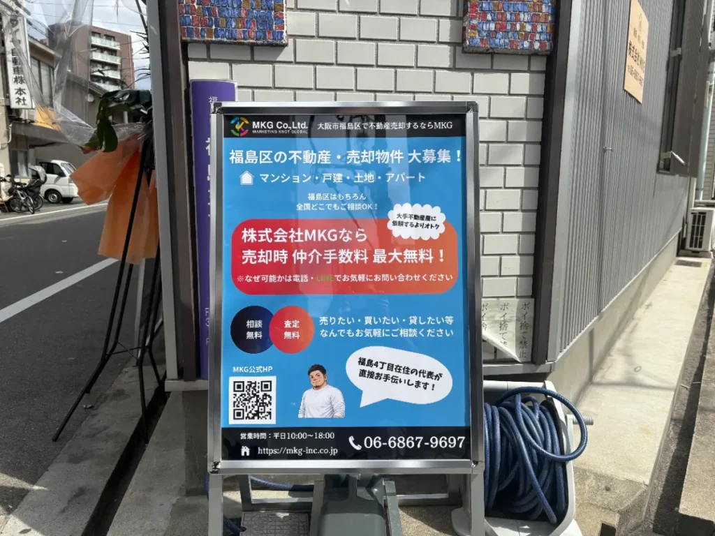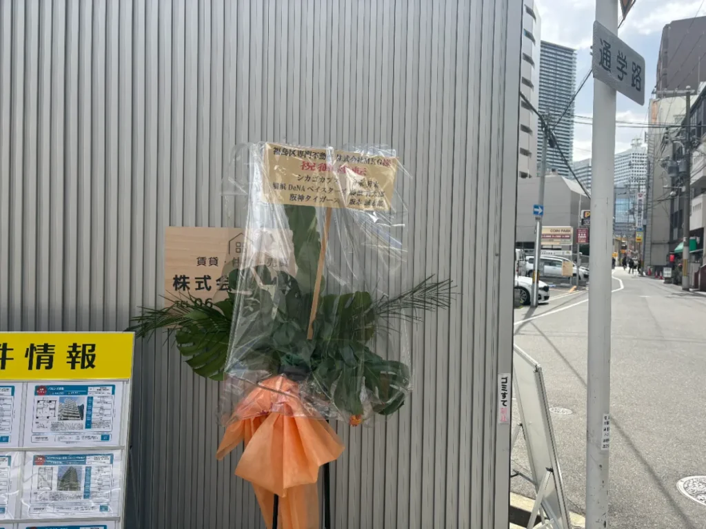 JR新福島駅の近くに福島区専門不動産「MKG」が実店舗をオープンしています。店頭では著名なプロ野球選手から贈られた観葉植物が目を惹いていました。都心へのアクセス利便性がよく、飲食店も多い福島エリアは近年大きく注目を浴びているとあって、「専門」の2文字は心強い限りです。