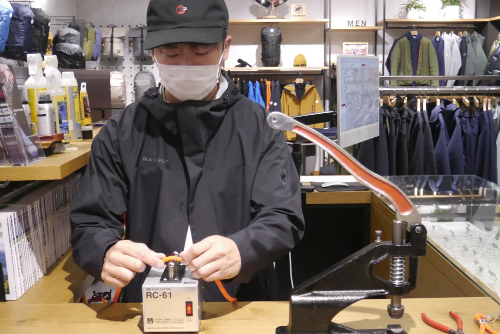 「マムート」を象徴するオレンジまたはブルーのロープをカットし、 「マムート」のブランドロゴがプリントされた留め金をプレス!このプレス部分は実際に購入者が体験できるとのこと。 「マムート」ファンはぜひ手に入れておきたい一品ですね。