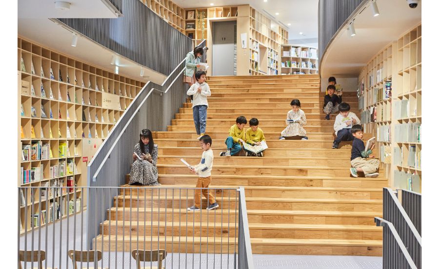 子どもたちが自由に本を読める工夫を凝らした「こども本の森 中之島」。ここでは、いわゆる机や椅子が整然と並んでいる図書館とは全く違います。