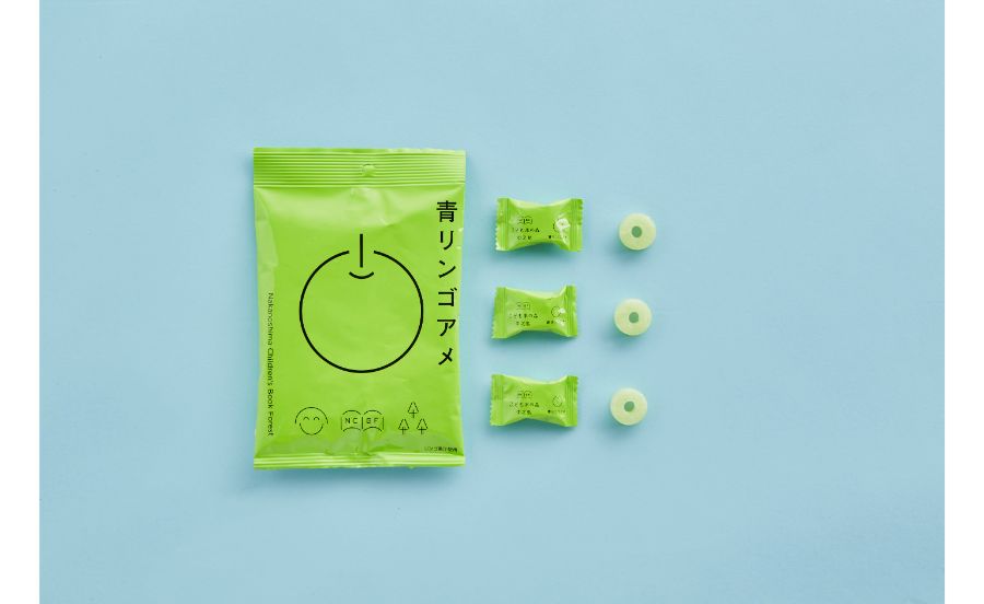 なかでも注目は大阪の老舗会社さんとコラボした商品。「青いりんご」のオブジェにちなみ、パインアメの会社が作った「青リンゴアメ」324円。