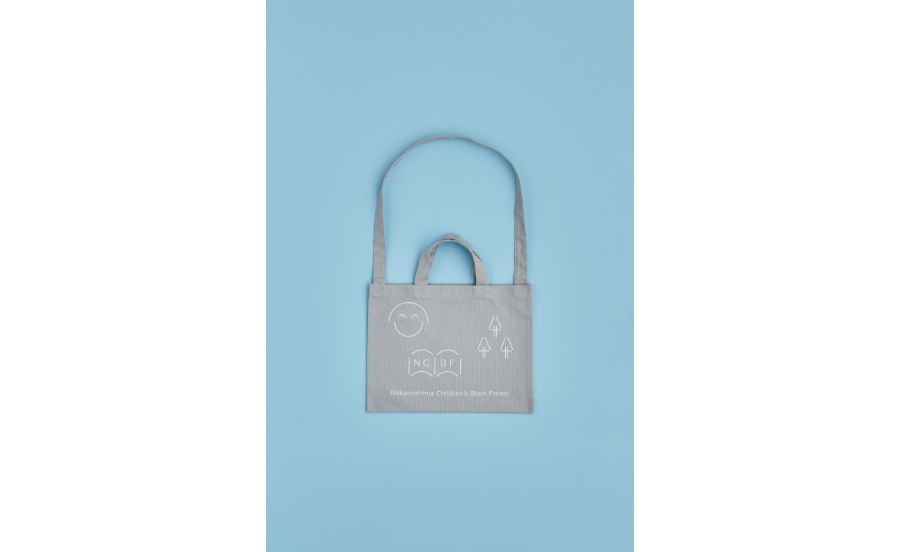 ロゴをあしらったグッズも多くそろいます。持ちでが肩掛けと手提げの2種類ある「トートバッグ」。子どもの身長に合わせたショルダーの長さのため、学校やお稽古にも重宝します。「トートバッグ」3,300円。