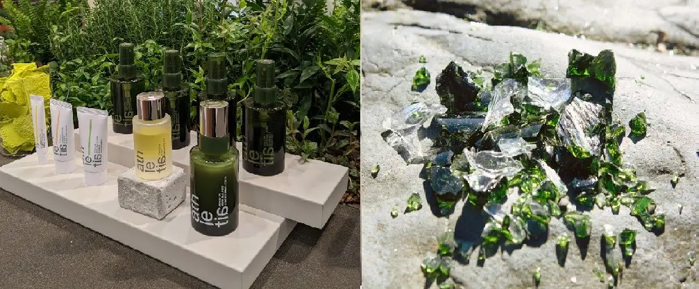 そのほか、コスメを回収し、海をきれいにする取り組みも実施されます。「ニールズヤード レメディーズ」のガラス容器は、店頭ディスプレイに使用されたり、アップサイクル製品として再利用されたり。