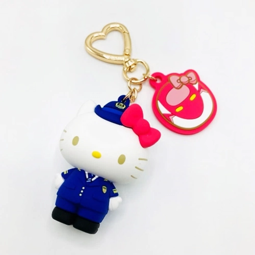 制服を着たハローキティのマスコットチャーム。バッグに付けるのにもぴったり。