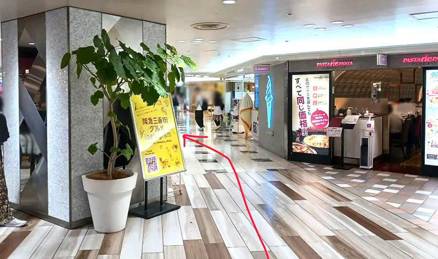 ▼「THREEPPY(スリーピー)梅田エスト店」 地上からの行き方