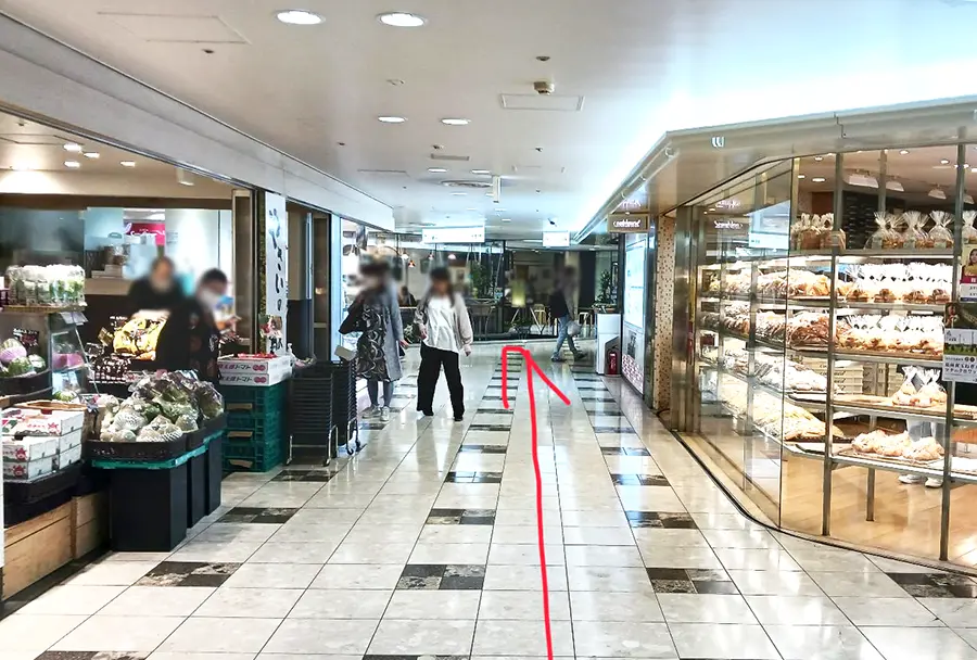 2 ホワイティうめだ プチシャンエリアを北に向かって真っすぐ進みます。